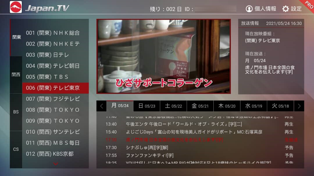 JapanTV Pro provides you the best and most stable Terrestrial / BS / CS in Japan, support Android all device, as well as monthly and annual fees provide and unlimited 24-hours viewing.
